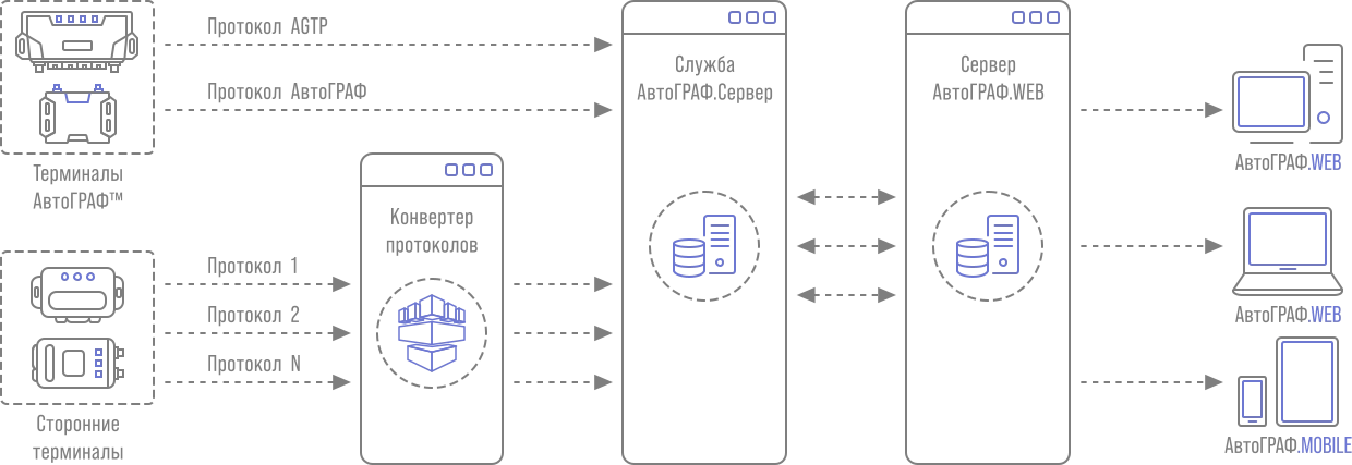 - DataLoaderService (для загрузки данных устройств мониторинга из ПО АвтоГРАФ.Сервер в папку данных «..\Data» ПО АвтоГРАФ.WEB)